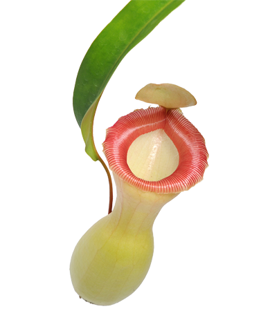 Alle Nepenthes-Arten sind fleischfressend und verwenden hängende oder bodennahe Kannen, um Insekten zu fangen. Je nach Art können diese exotischen Kannen bis zu 35 cm lang werden und variieren stark in Form, Größe und Farbe. Jede Kanne ist mit Verdauungsflüssigkeit gefüllt und lockt Beute mit süßem Nektar an. Sobald ein Insekt oder ein kleines Tier hineinfällt, verhindern die glatten Innenwände ein Entkommen, und die Beute wird allmählich aufgelöst und von der Pflanze absorbiert.